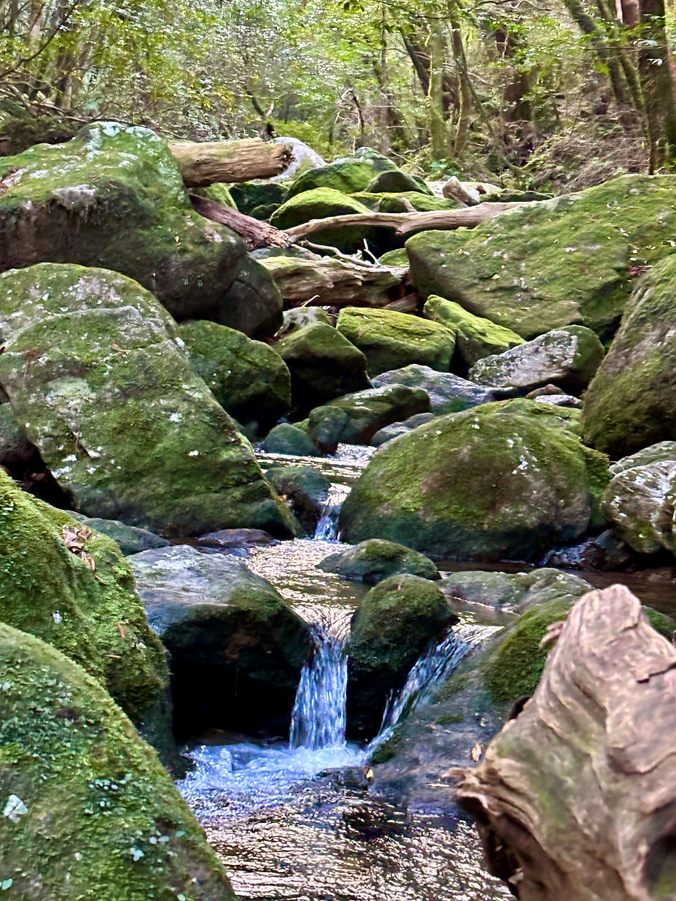 We entered from Shiratani Unsuikyo Ravine, famous for its primeval forest. It is one of Japan's leading moss spots, designated as "Japan's Precious Moss Forest" by the Society of Natural Bryology. Everything, from stones to trees, is covered in green moss, creating a fantastic and mysterious world.