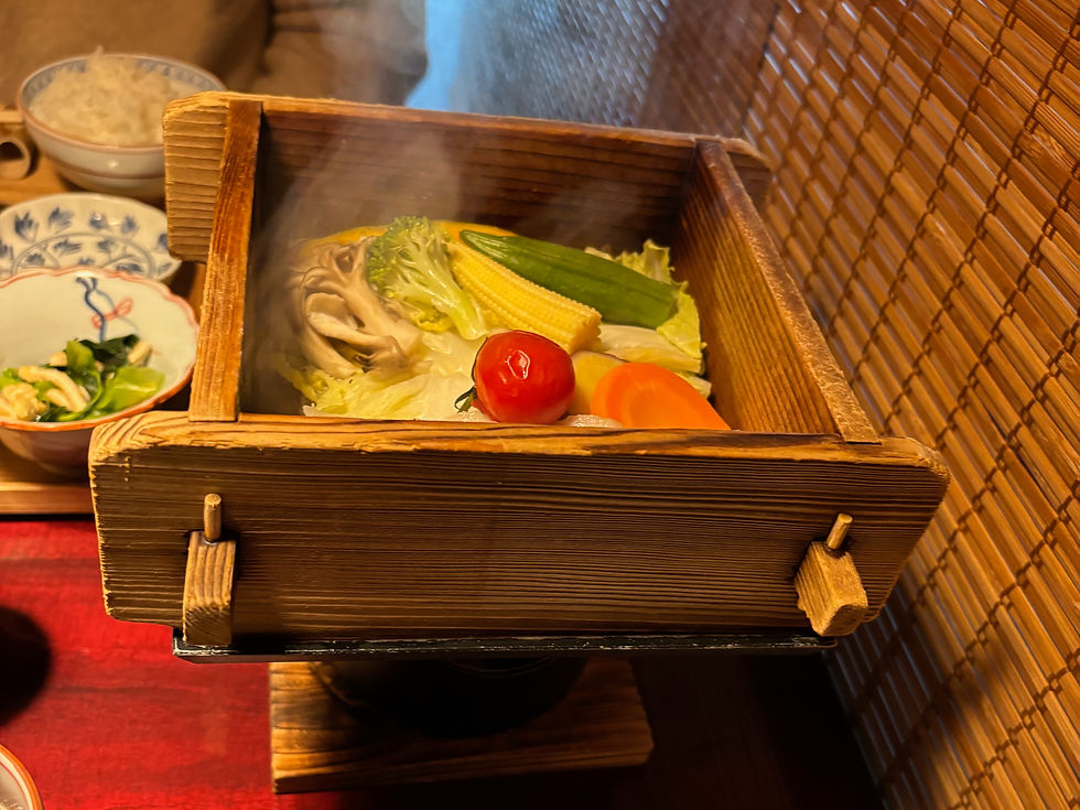We were treated to a gorgeous Japanese breakfast with a touch of local tradition. One highlight was Seiro-mushi, a steamed dish. It was a voluminous breakfast, but so delicious that we ate it all.