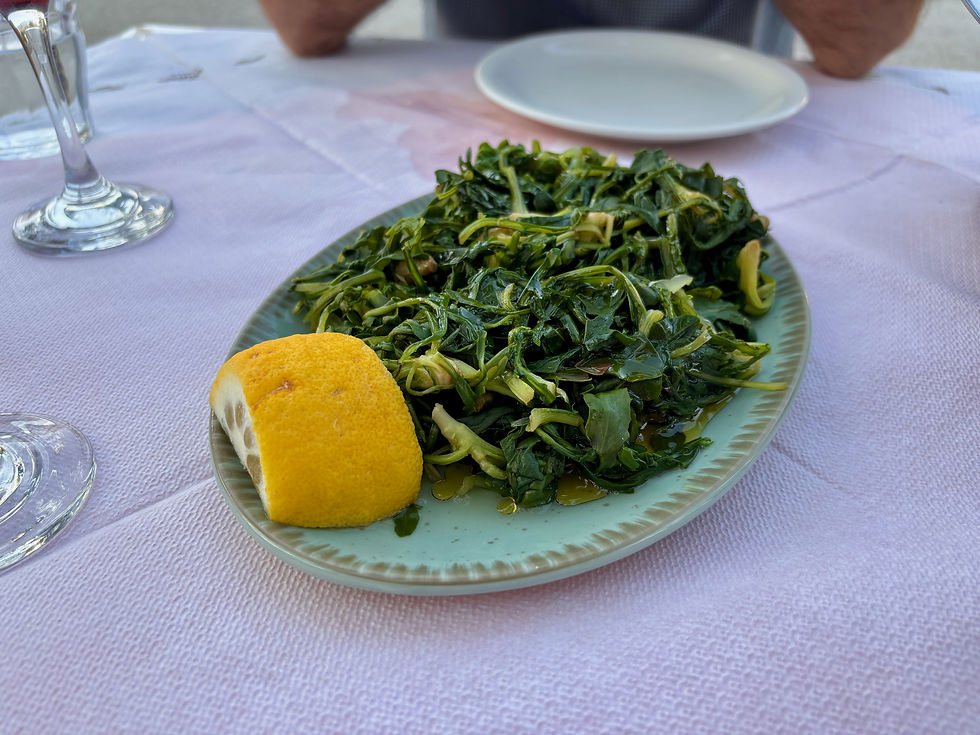 Following the waiter’s recommendation, we started with a dish of local greens, slightly bitter, a bit like spinach — and very tasty.