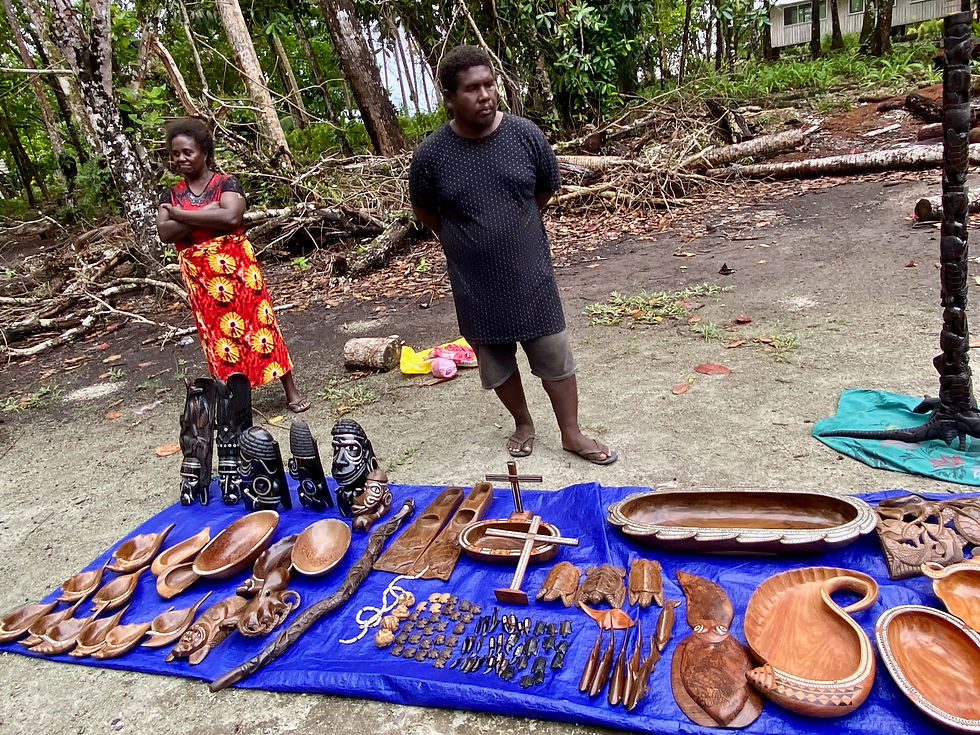 Towards the back of the market, a circle of stalls showcased intricate carving art, each piece proudly presented by the skilled artisans. It was a delightful sight to behold, witnessing the rich cultural heritage of the Solomon Islands on display.