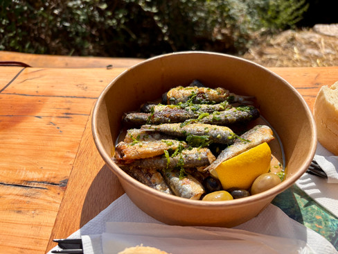 and a simple lunch that turned out absolutely delicious:fried sardines for him 🐟 and ćevapčiči (grilled minced-meat sausages) for me.